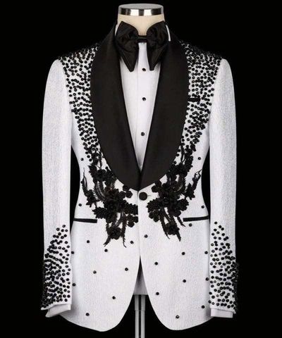 2025 Luxus Weiß Exquisite Hochzeit Smoking Perlen Perlen 3-teiliges Set Herren Anzüge Mode Abend Bankett Party Event Herren Anzüge