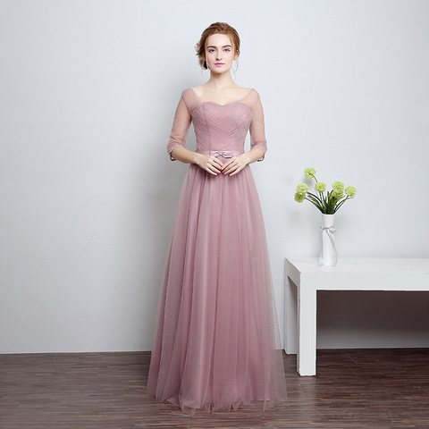 2018 Mais Recente Elegante Lace Apliques Blue Tulle Bridesmaids Sister Dress China Pink Long Bridesmaid Dress
