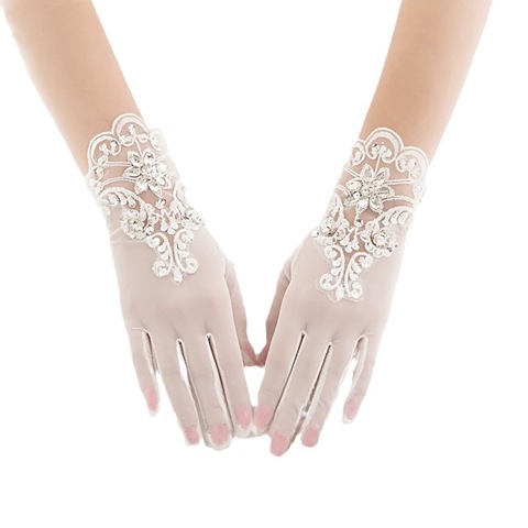 2024 Новые короткие тонкие тюловые Свадебные перчатки с полным пальцем высокого класса цвета слоновой кости кружева короткие свадебные перчатки для фотосъемки