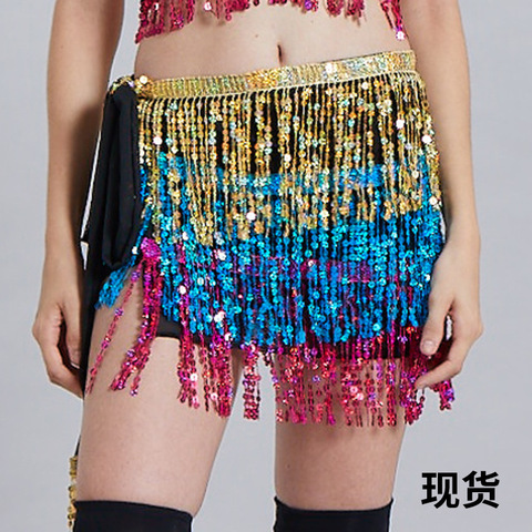 20 renkler Sequins göbek kadınlar için dans eteği kıyafet Fringe Rave kostüm sahne giyim göbek dans kalça etek eşarp pullu Wrap