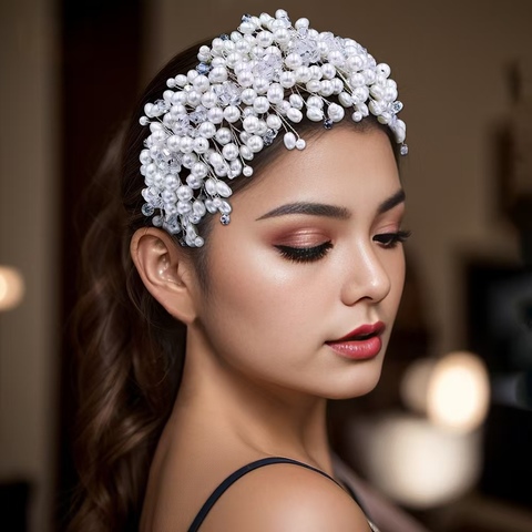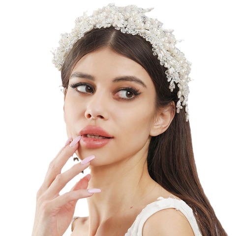 2024 lüks inci boncuklu Headpieces gelin saç bandı el yapımı düğün başlığı Tiaras çarpıcı parti saç takı gelin için
