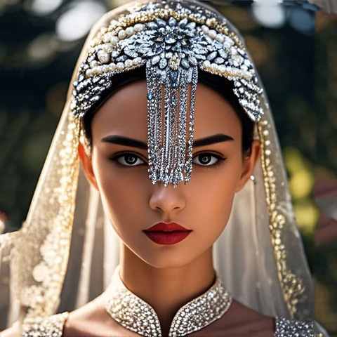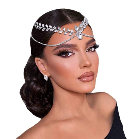 2024 afrika Headpieces moda saç aksesuarları katmanlı Rhinestones su Rhinestone Tiaras zincirleri gotik alın süsler