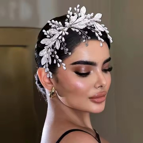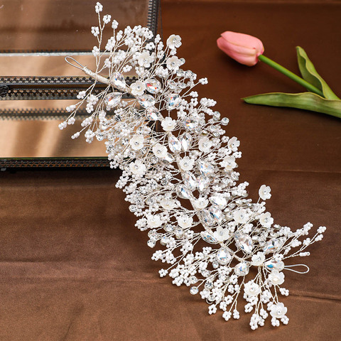 2024 el yapımı Headpieces kristal inci saç tarak Pin klip gümüş renk Rhinestone yaprak gelin düğün aksesuarları için Harpin