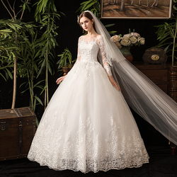 Thời trang mới sưng húp bóng dài tay áo ngọc trai đính cườm hoa cô dâu váy trắng Chiều dài sàn cộng với kích thước áo cưới